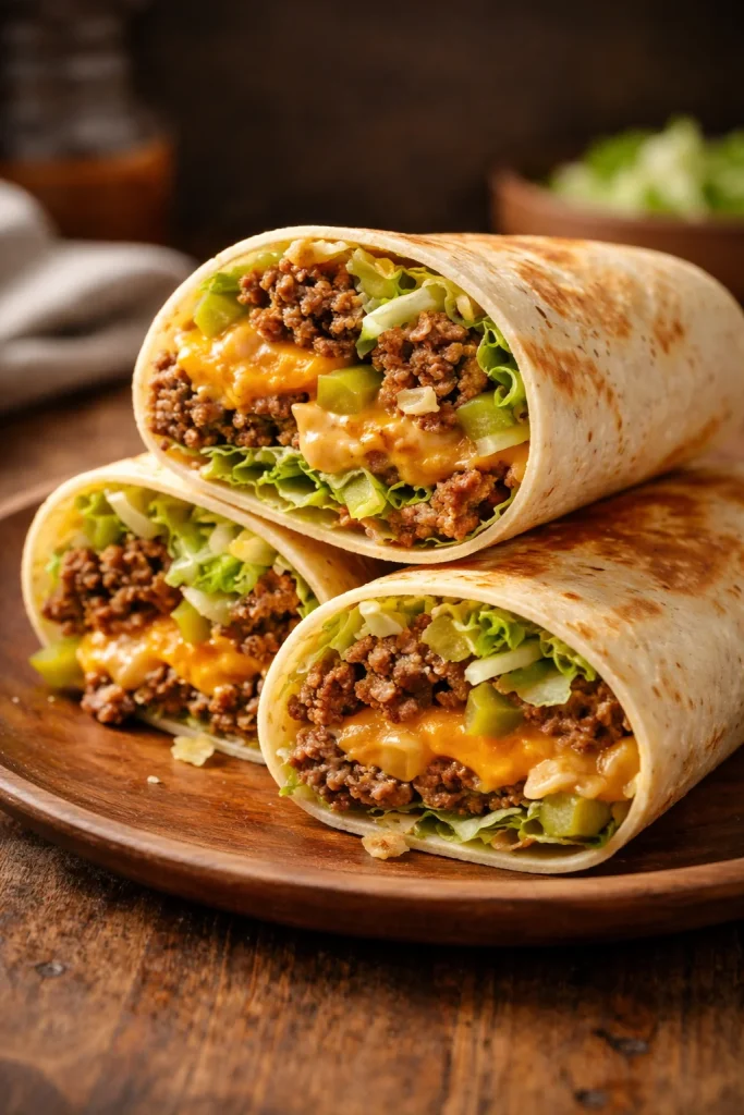 A cozy and comforting Big Mac Wrap capturing the familiar flavors of a beloved burger, perfect for quick dinners or make-ahead lunches.