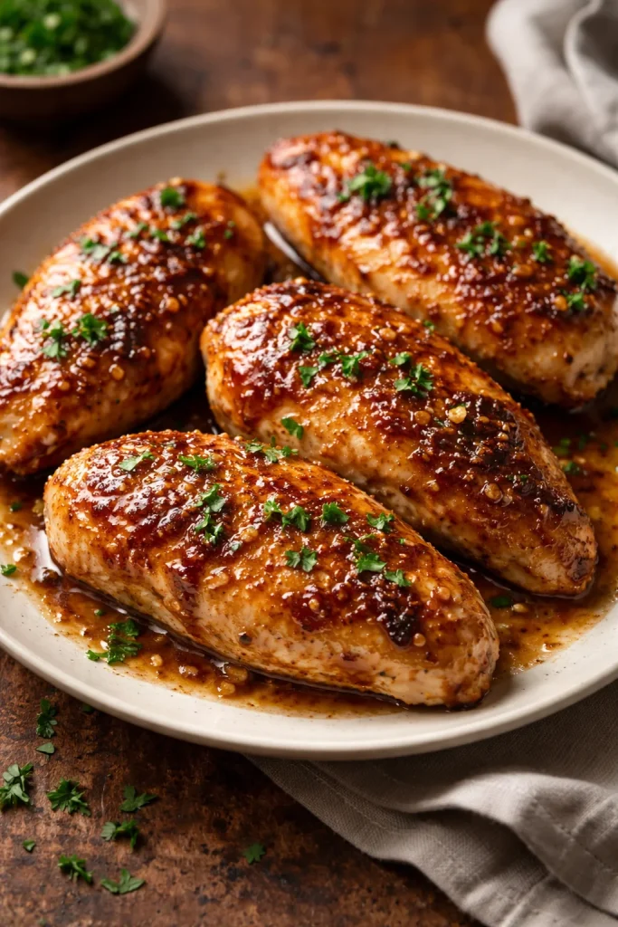 - Check doneness with an instant-read thermometer (internal temp should be 165°F / 74°C). If the breasts are thick, finish in a 375°F oven for 4–6 minutes after glazing.