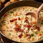 Crack Chicken Soup is an indulgent, creamy comfort-food favorite that combines tender chicken, tangy ranch flavor, crispy bacon, and gooey cheddar into a single bowl. It’s quick to make, crowd-pleasing, and perfect for cold nights, weeknight dinners, or when you want something satisfying with minimal fuss.