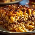 This casserole layers seasoned ground beef with cheesy macaroni, then bakes under a tangy ketchup and barbecue glaze for an irresistible finish. It’s forgiving to substitutions and reheats well. If you enjoy casseroles like the fully loaded classic chili cheese dog casserole, you’ll appreciate the crowd-pleasing simplicity here.