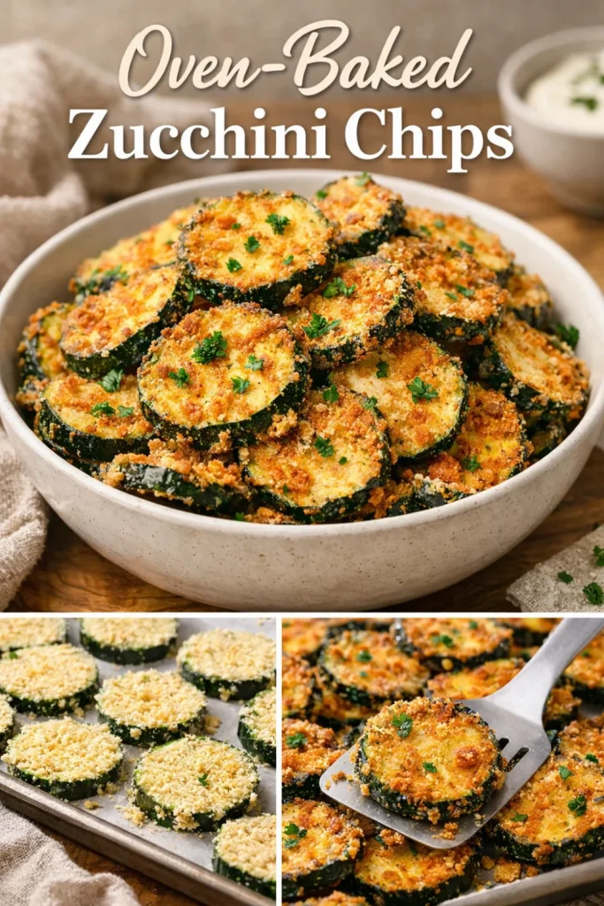 There’s a simple joy in turning humble zucchini into something golden and shareable. Oven-Baked Zucchini Chips are a little bit nostalgic, a little bit modern — a healthy option that still feels like comfort food and can easily slide into any meal plan, whether you need a quick dinner idea or a festive treat to bring to a gathering. Try the crunchy Parmesan twist for a salty, savory hit, and don’t forget to pass these around the table — crisp chips taste better when laughter and stories are part of the recipe. For another crisp take on zucchini, I love this recipe for Crispy Parmesan Baked Zucchini Chips – Healthy Recipes Blog.