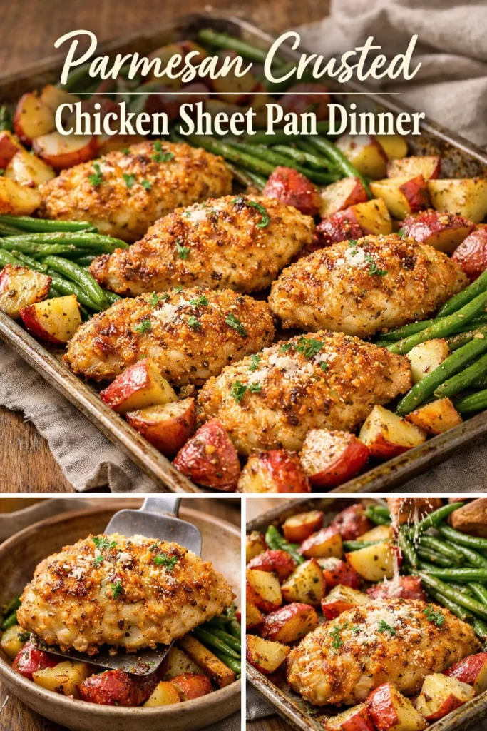 There is something about the smell of cheese melting into golden crust and garlic warming a kitchen that feels like a warm hug—welcome to my Parmesan Crusted Chicken Sheet Pan Dinner, a homemade meal that quickly becomes a family recipe you reach for on busy weeknights and celebratory Sundays alike. Within the first few minutes of roasting you will hear soft sizzles and smell the nutty, toasty parmesan beginning to caramelize—this dish is comfort food turned quick dinner idea. If you want a helpful reference while you cook, I often point readers to a similar, detailed guide like this detailed Parmesan Crusted Chicken recipe for comparison and extra tips.