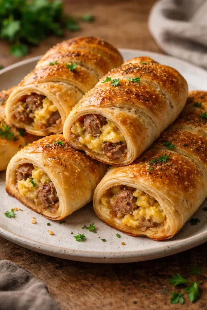 Serve these Sausage Egg Breakfast Rolls with a side of crisp fruit salad and a steaming mug of coffee for a weekend brunch that feels both cozy and celebratory. For a casual dinner, pair with roasted potatoes or a tangy slaw. On holidays, line a platter with colorful garnishes and let guests build their own rolls — it becomes a communal, cheerful experience that turns a simple meal into a family recipe in the making.