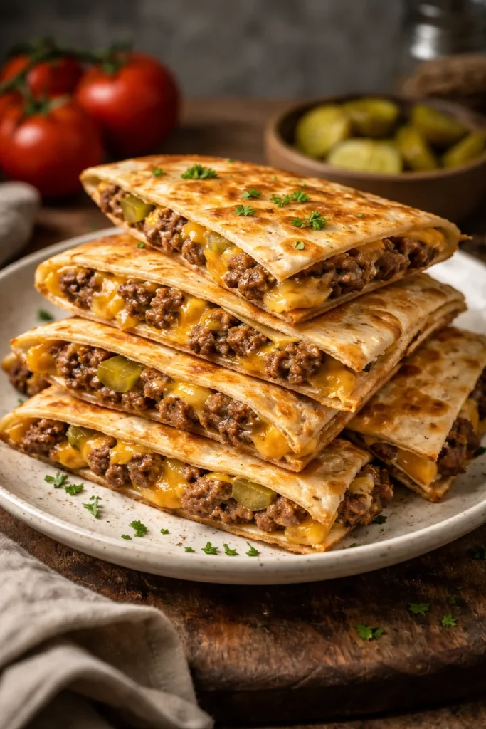 A quick, crowd-pleasing cross between a smash burger and a quesadilla — melty, crispy, and ready in minutes.